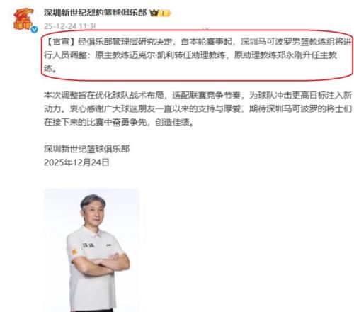 至于深圳队为何会更换主教练,也是进行了说明,深圳队表示:本次调整教练工作,旨在优化球队战术布局,从而能够更加适配CBA联赛竞争节奏,为球队冲击赛季更高的目标,注入一份新的动力。