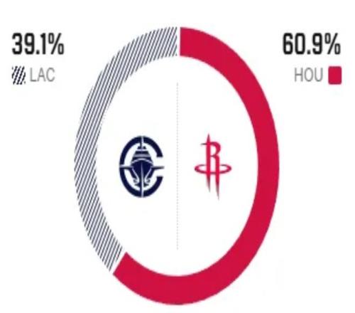 赛前,美媒ESPN对本场比赛进行了胜率预测,火箭队胜率依旧高达63.4%,快船胜率则仅有36.6% ,差距明显。