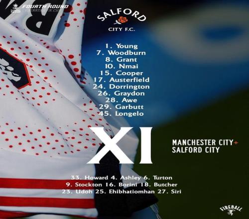 北京时间2月14日23:00,足总杯第四轮继续进行,曼城坐镇阿提哈德球场迎战英乙球队索尔福德城,本场主裁判为马特-多诺霍,赛前双方首发出炉。