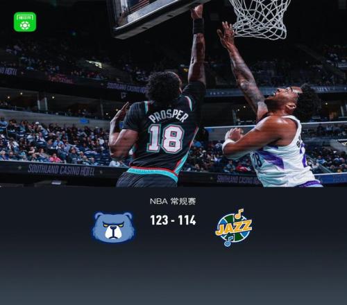 第四节灰熊GG-杰克逊拿下9分,爵士科利尔拿下10分,最终灰熊123-114战胜爵士