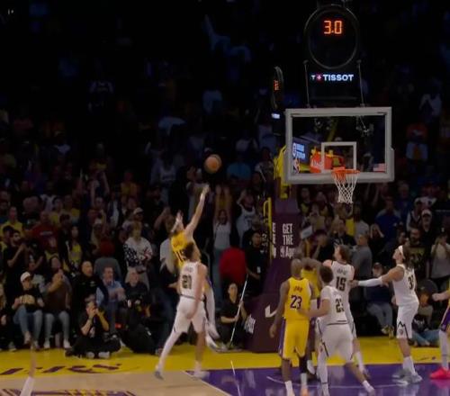 第四节比赛,掘金的三分手感彻底打开,单节15中7的三分,其中在两侧底角就进了6个。好在湖人这边也能续上火力,没有彻底崩盘,里夫斯末节14分让湖人等到了东契奇的复苏。东契奇之后的三分+三次罚球,让比赛重新回到同一起跑线。