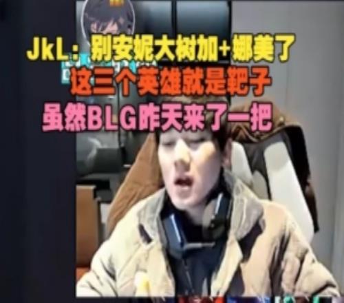 JackeyLove:别安妮大树加+娜美了,这三个英雄就是靶子,虽然BLG昨天来了一把,但是感觉真难赢而且没有打团的画面。