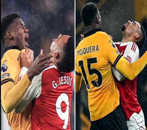 热苏斯本来倒地不起,听到终场哨响跳起来和对手爆发肢体冲突